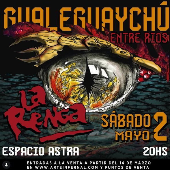 El próximo sábado 2 de mayo a las 20 hs, se llevará a cabo en Espacio Astra un recital de la reconocida banda argentina La Renga.